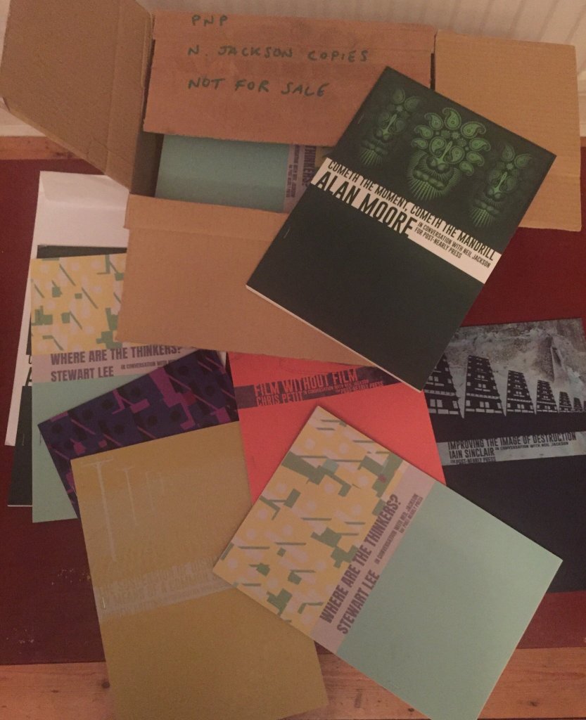 And finally…some MEGA NEWS!! Our next title scheduled for late Autumn 2021 will be a hardback compilation of the near legendary Post-Nearly Press conversations series. With all original copies (even damages and rejects) of the unique stapled books now long sold out, a new compilation is planned which will feature the five editions to date (with Iain Sinclair, Chris Petit, Andrew Kötting, Alan Moore and Stewart Lee), along with unseen artwork, an introduction, foreword and some extras. We are very excited to be working on this amazing series! So that’s a little taster of our inaugural year – thanks again for your support and remember to stay tuned for more details about all of our future projects…